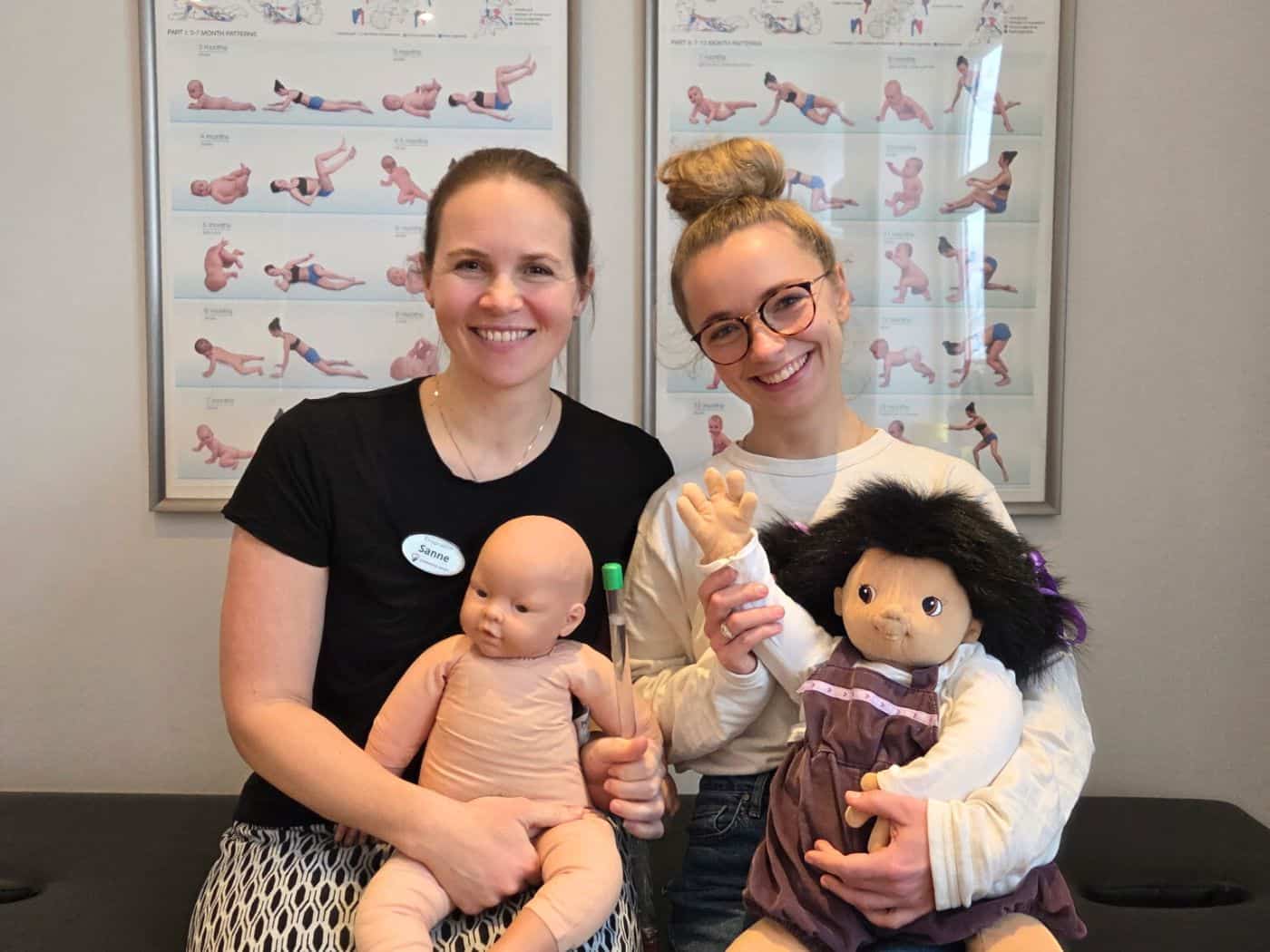 “Så kunne Sanne redde os igen! Min datter på knap 5 måneder havde gennem nogle uger været pylret, havde svært ved at ligge selv – som hun ellers er god til. Hun blev ked af det når vi vendte hende fra maveliggende og ville af og til, ikke spise fra mit ene bryst. Hun hang også lidt med hovedet når hun lå på maven. Jeg tilskrev det meste af det et tigerspring, for hun var i fuld gang med at lære en masse nyt. Men da det så blev mere udtalt at hun ikke ville spise fra den ene side tænkte jeg det var tid til at få fat på Sanne. Sanne fandt låsninger i brystryggen og da de var klaret lagde hun sig igen i den fine bue på maven som hun har gjort tidligere. Foruden låsningerne i brystryggen var der lidt sejhed i det ene bækkenled, en lidt stram arm og en lille smule i nakken. Da jeg kom hjem med min datter lå hun igen fint selv, ikke længere pylret. Glad og tilfreds – og det bedste – sover igen roligt om natten og har ikke brug for sutten mellem amningerne.“